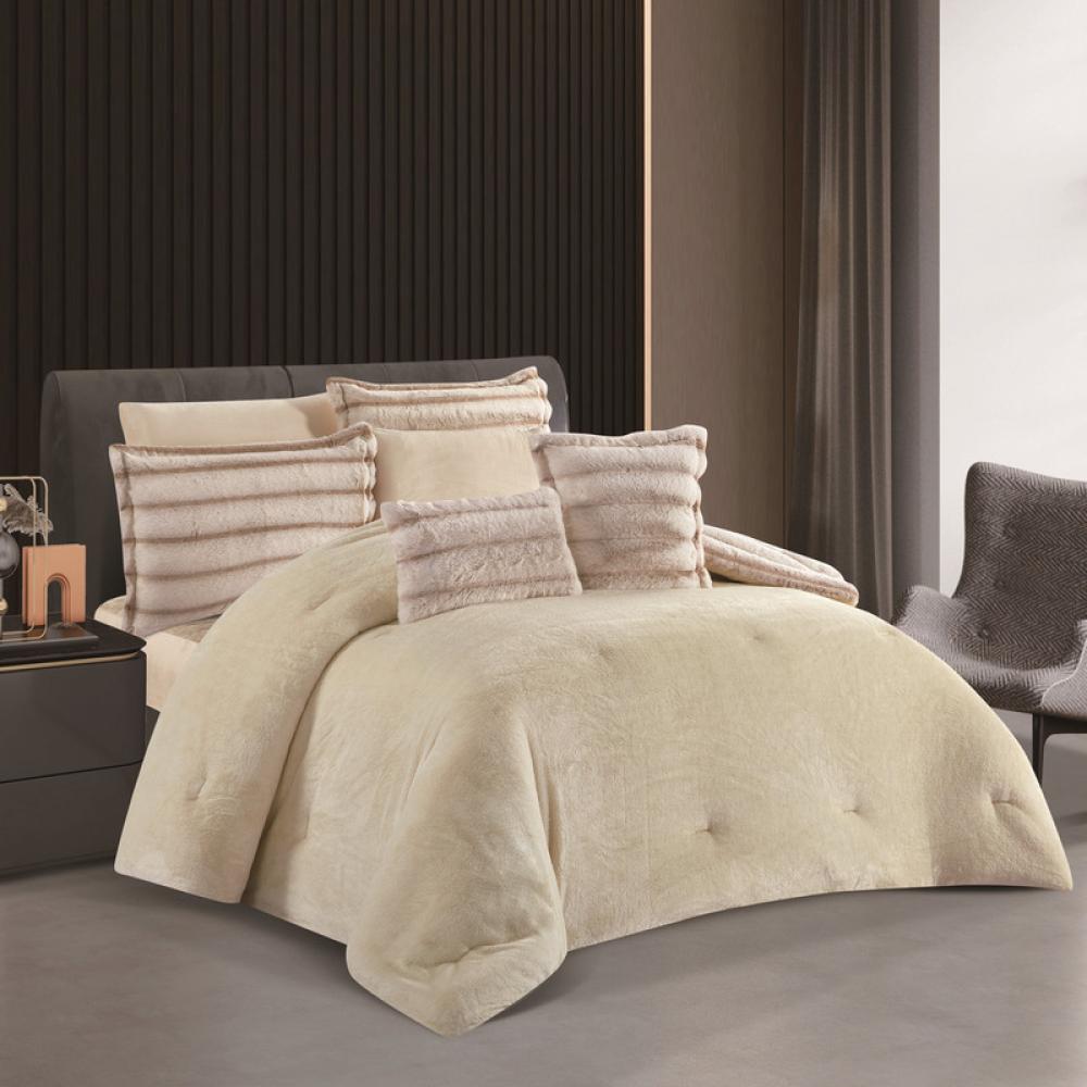 طقم مفرش شتوي نفرين من هورس لحاف فرو مخملي ناعم وجهين 8 قطع مقاس كنج Lareina-006